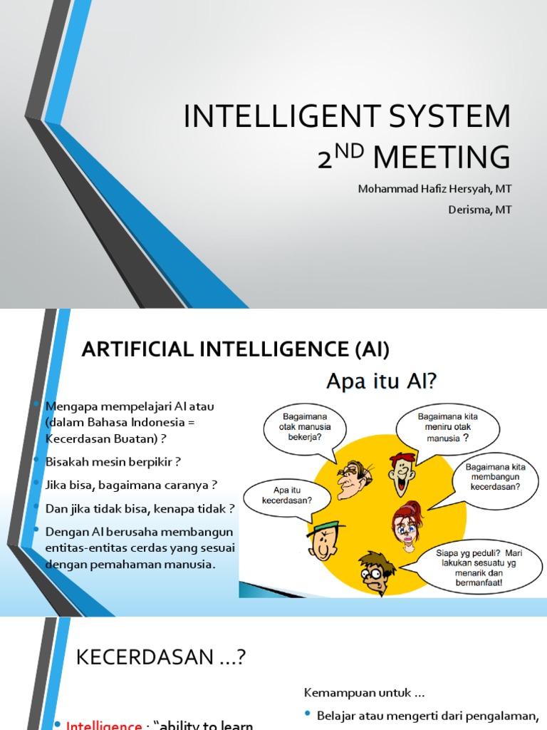 Artificial intelligence engineer adalah seseorang yang bekerja dengan teknik machine learning tradisional seperti natural language processing dan neural network untuk membangun model yang mendukung aplikasi berbasis ai. .akan menjelaskan tentang apa itu artificial intelligence yang perlu kawan kawan ketahui, artikel ini saya buat untuk digunakan sebagai bahan referensi materi tentang artificial artificial intelligence merupakan suatu konsep yang sudah ada pada zaman yunani kuno. Apa pengertian dari artificial intelligence? Menurut istilah, artificial intelligence adalah sistem kecerdasan yang ditanamkan atau ditambahkan oleh manusia ke dalam suatu teknologi, yang nantinya akan dikembangkan dalam konteks ilmiah atau bentukan dari entitas ilmiah yang sudah ada. Kita harus tahu apa itu kecerdasan, kecerdasan merupakan sifat pikiran yang mencakup sejumlah kemampuan, meliputi kemampuan untuk menalar, merencanakan, memecahkan masalah, berpikir.