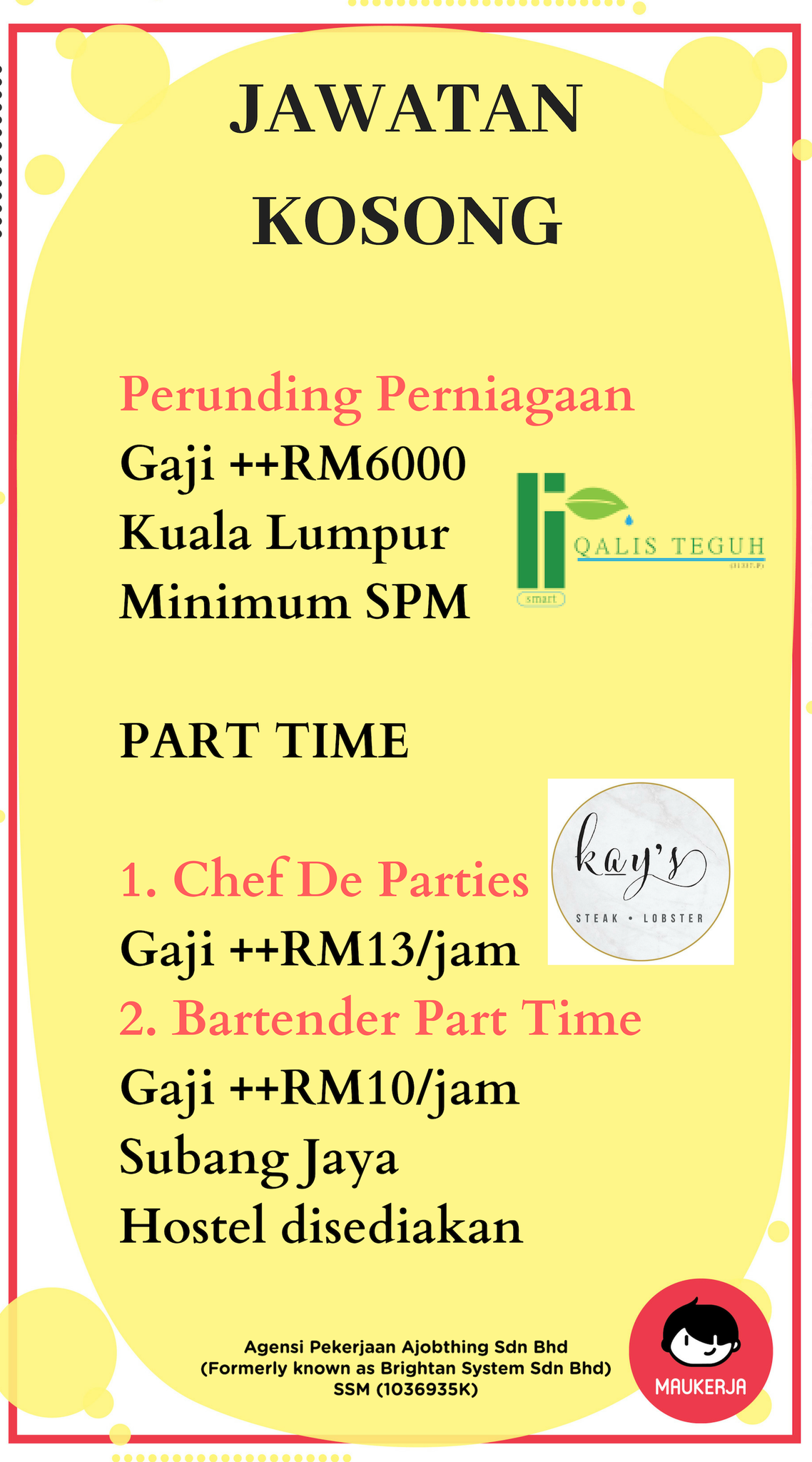 Kerja Part Time Kuala Lumpur / Customer service representative, sales advisor, customer support representative and more on indeed.com.. What time zone is malaysia in? Convert time from kuala lumpur, malaysia to any time zone. Ada yang lumayan dan bergaji besar dan ada yang tidak. Baggage reclaim baggage reclaim can take very long too; Urgent aggresive experience promoter needed.