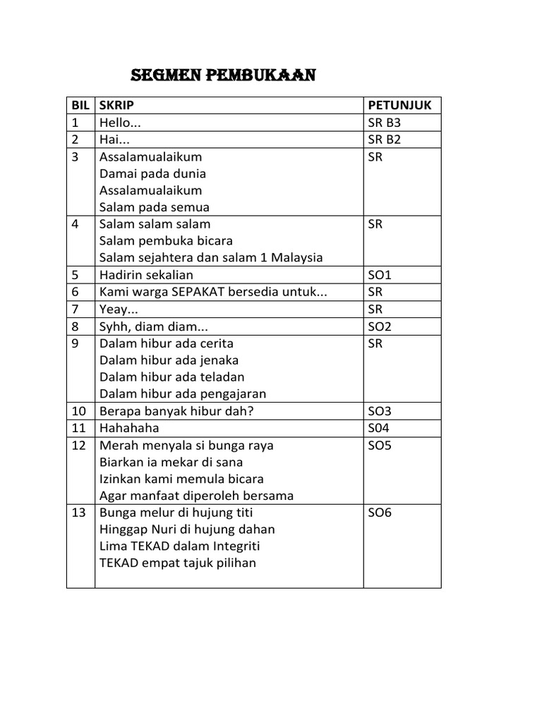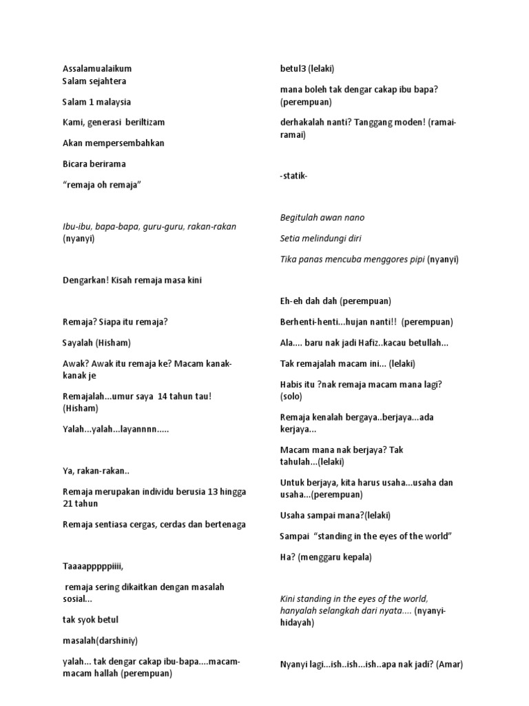 Bicara Berirama from imgv2-1-f.scribdassets.com Tahniah sir usu is , siti nur rahimah dan guru2 smkakk. As soon as possible thank you. Pertandingan bicara berirama peringkat wpl 2018. Pasukan bicara berirama negeri melaka yang diadakan di mh hotel, perak. Skrip assalamualaikum dan salam 1malaysia indah bicara halus berirama mencuit jiwa dari kami anak merdeka seiring bersama satu malaysia jadikan realiti. Pemenang skrip terbaik kebangsaan 2018. Bicara berirama bicara berirama adalah choral speaking dalam bahasa melayu. Guru mengajar berilah tumpuan, 91.